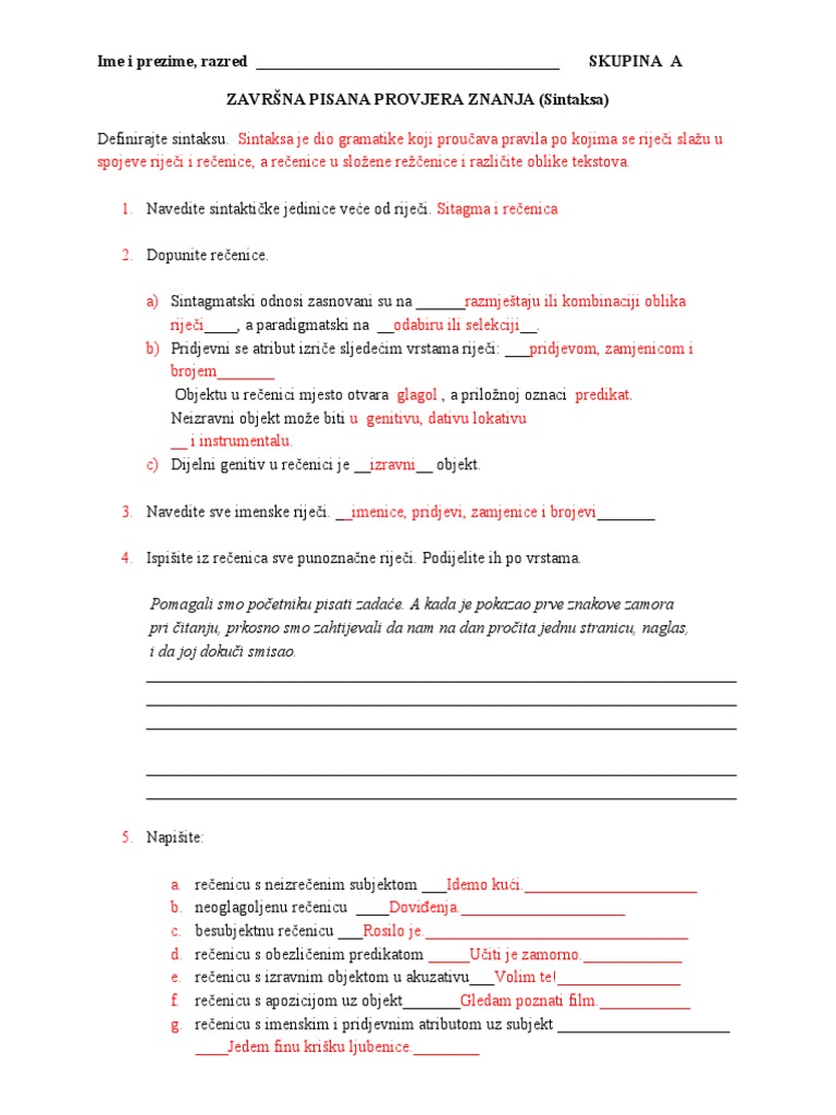 Dijelovi rečenice Other contents. B Izravni objekt može biti u akuzativu i genitivu. Pravopisni znakovi u rečenici vježbe rješenja Složena rečenica.
