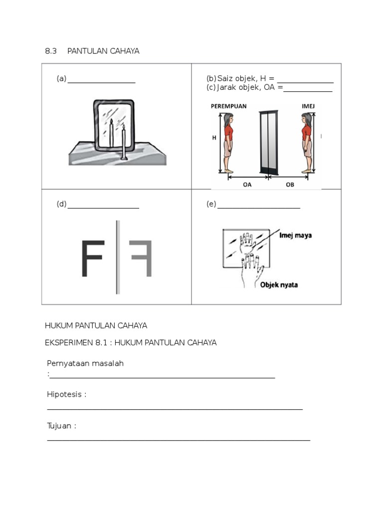 Apabila cahaya dari sumber cahaya mengenai suatu objek cahaya melantun ke arah yang lain. Intensitas cahaya pada bidang dwimatra. 1 Antara berikut aktiviti yang mana menunjukkan pantulan cahaya.
