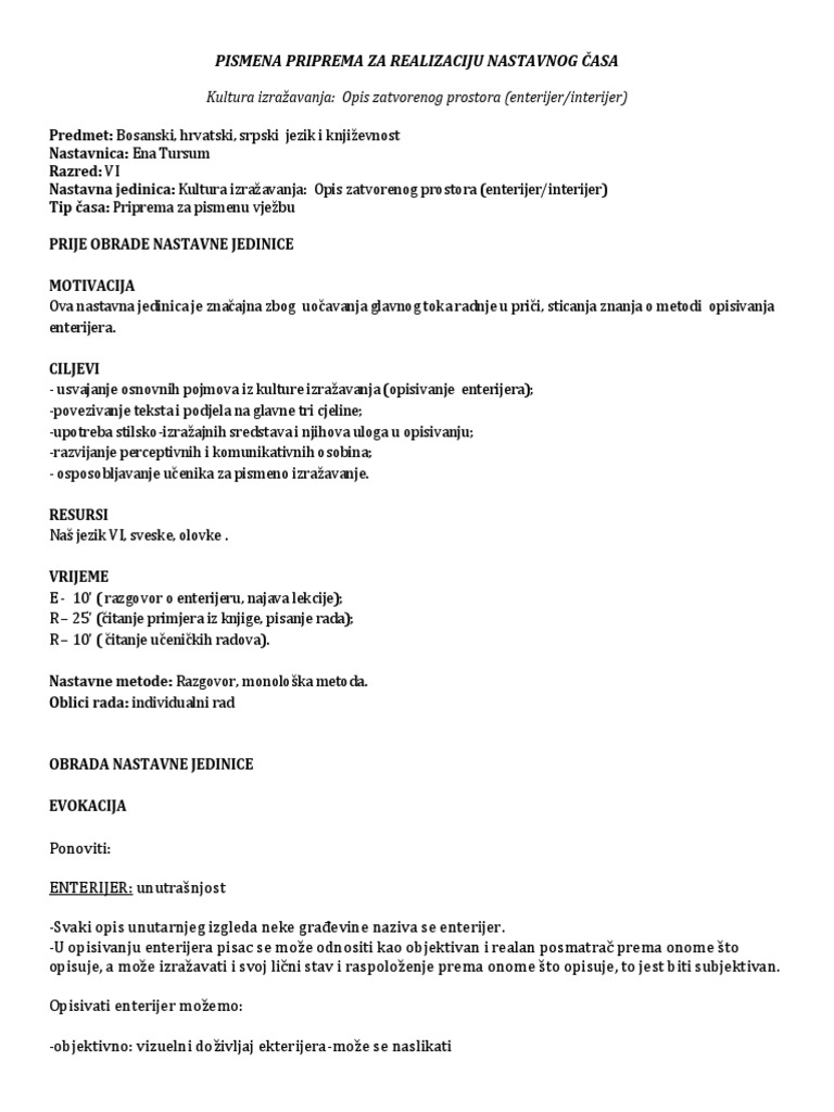 U ovom članku nalaze se dva sastava koja govore o enterijeru. Subjektivan opis temelji se na osobnome doživljaju onoga koji opisuje pa se tako.
