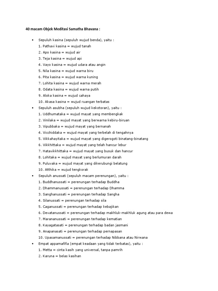 40 Macam Objek Meditasi Samatha Bhavana Pdf