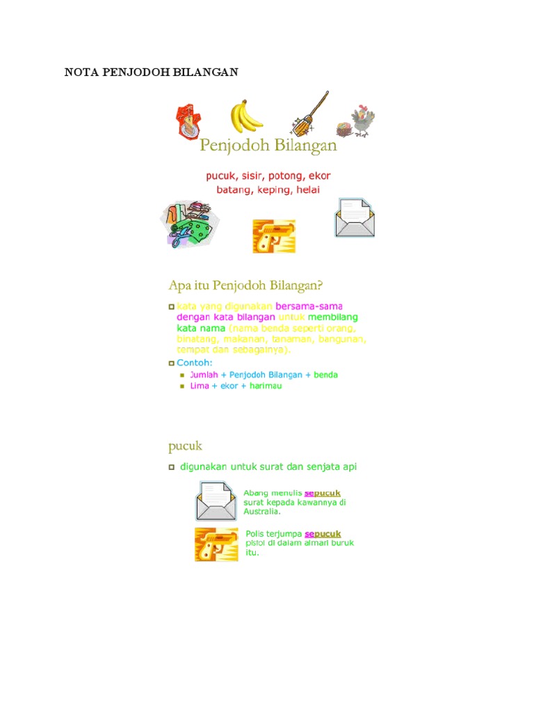 Senarai Penjodoh Bilangan Berikut Merupakan Bahan Senarai Penjodoh Bilangan Bm Modul Latihan Ini Mempunyai S Bahasa Melayu Latihan Bahasa