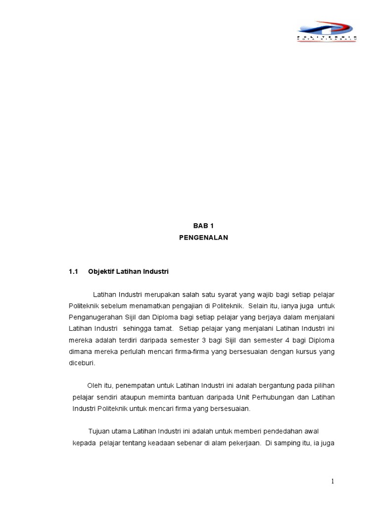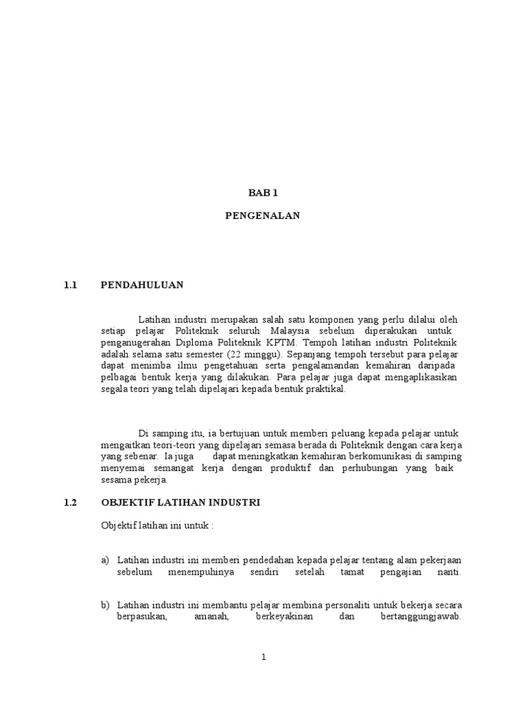 Bab 1 Pengenalan Latihan Industri Pdf