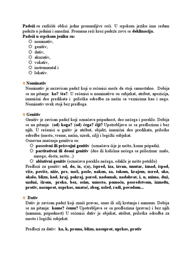 Promena po padežima prikazana je u tabeli. Pre pet hiljada godina drevni Indijci su uzgajali šećrnu trsku. Sintaksa je deo gramatike koji izučava metode na osnovu kojih se od reči grade rečenice.